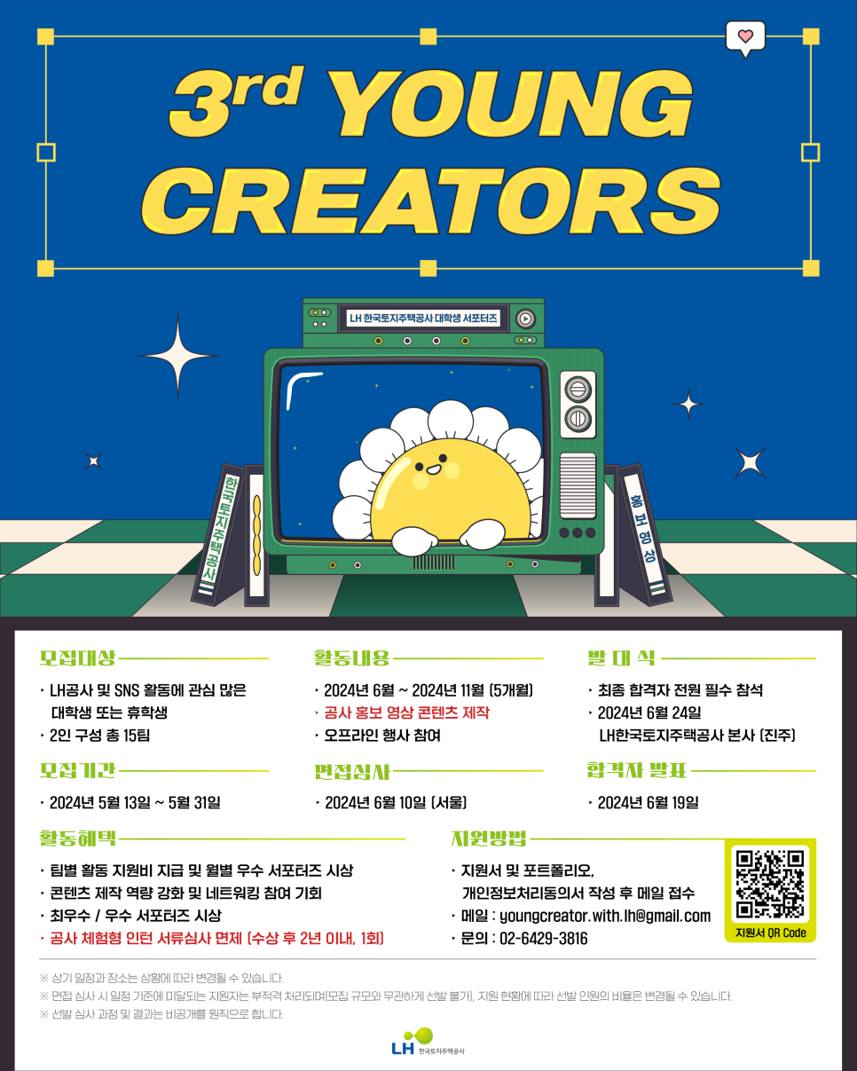 2024 LH SNS서포터즈 LH 영(Young) 크리에이터 3기 모집대한민국 모든 공모전 본문